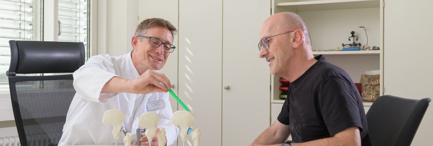 Im Vortrag „Hüftendoprothetik“ am 15.04.2026 von 17:30 bis 19:00 Uhr erläutert Chefarzt Dr. med. Stephan Oehler den operativen Ersatz eines verschlissenen Hüftgelenks durch künstliche Komponenten.